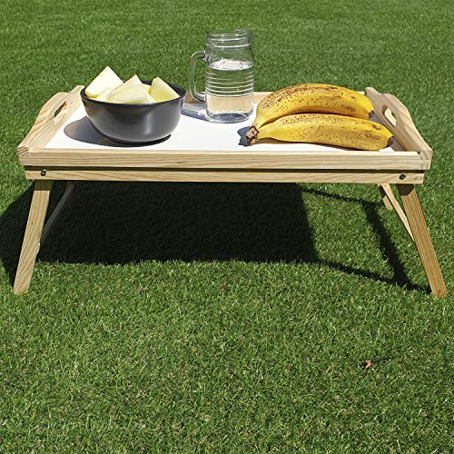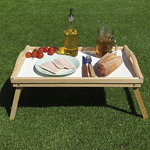 - Las asas de la bandeja de desayuno permiten una fácil movilidad; las patas se pliegan para un fácil almacenamiento; dimensiones (abierta): 55,8 x 25,9 x 22,8 cm; dimensiones (cerrada): 50 x 30 x 4 cm.