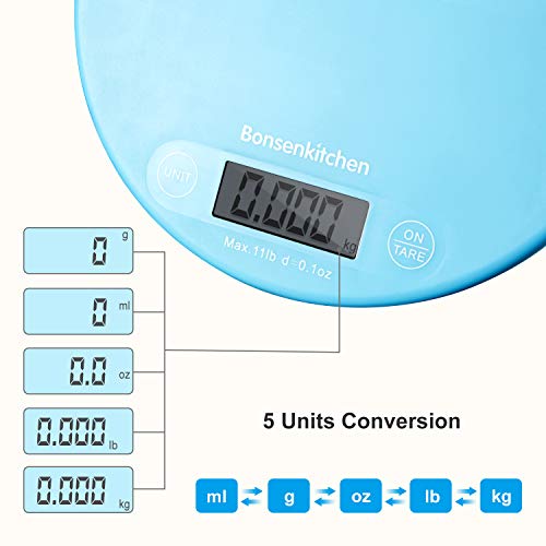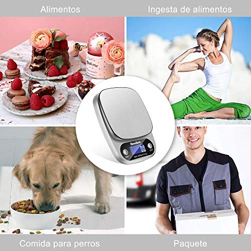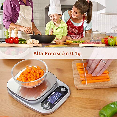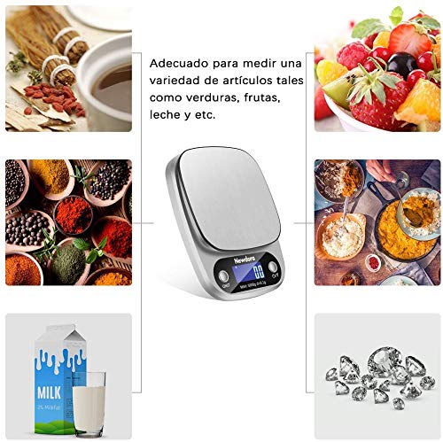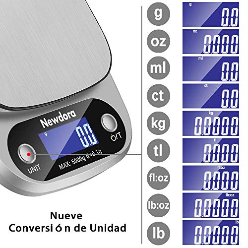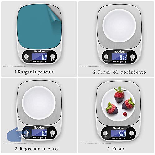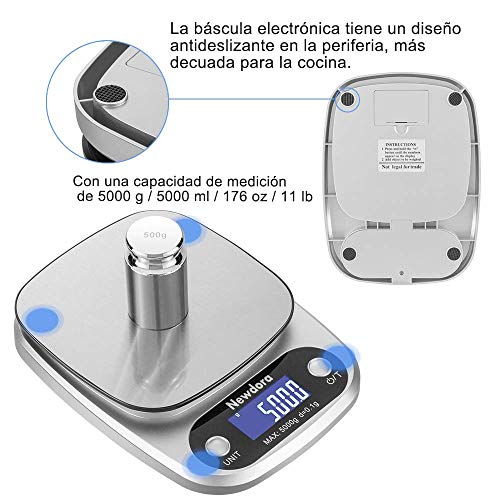 - 【Alta precisión】Esta báscula de cocina utiliza 4 sensores de alta precisión, la capacidad de 5000 g con una división de 1 g te permite pesar harina, azúcar, fruta, etc., para un control exacto de las porciones y una cocción más perfecta.