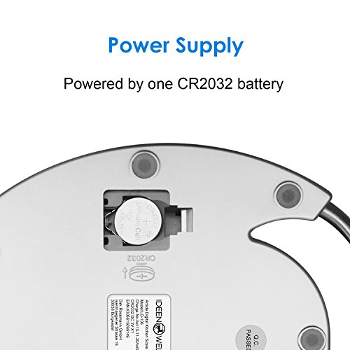 - Funciona con una pila CR2032, incluída en el producto para un uso inmediato de la báscula