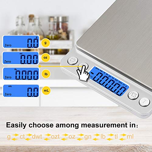 - 【Elección ideal】La superficie lisa de acero inoxidable permite que sea muy fácil de limpiar, por lo que es ideal para hogares y cocinas. Está equipado con una pantalla LCD con luz de fondo que muestra números lo suficientemente grandes como para una mejor lectura.