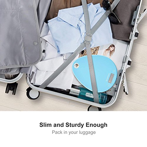 - Alta precisión y alta calidad - con tecnología "step-on" y una plataforma de vidrio templado de 5 mm de alta calidad, 4 sensores de alta precisión garantizan mediciones precisas. En incrementos de 0,2 lb / 0,05 kg con una capacidad máxima de 180 kg/400lb. Las funciones de autocalibración y apagado automático brindan una mayor duración de la batería.