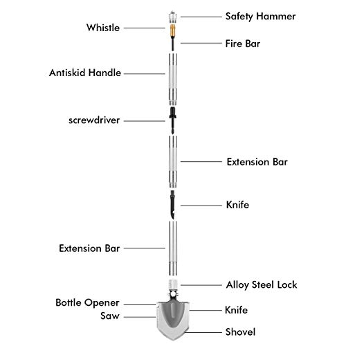 - Plegable y portable--Este bastón plegable se puede doblar en varias secciones interconectadas cuando no está en uso. El bastón tiene el tamaño perfecto para guardarlo en su bolsa, mochila, bolso grande o guantera.