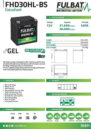 Fulbat - Batería moto Gel FHD30HL-BS/ETX30L 12V 30Ah