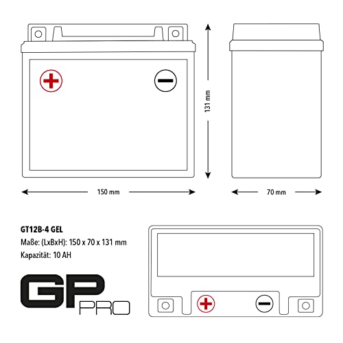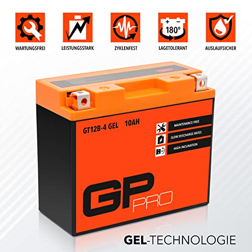 GP-PRO GT12B-4 - Batería de arranque para motos, 12V, 10Ah, parecido a YT12B-4 / YT12B-BS, sin necesidad de mantenimiento