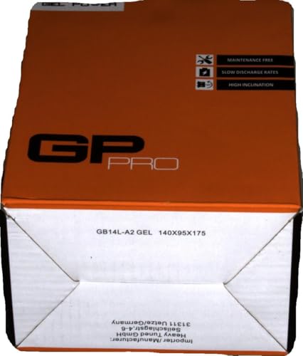 GP-PRO GB14L-A2 - Batería de arranque para motos, 12V, 14Ah, parecido a YB14L-A2 / 51411, sin necesidad de mantenimiento