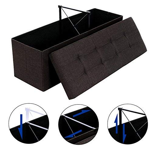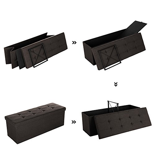 SONGMICS Baúl Puff Taburete para Almacenaje Plegable, Carga Máxima de 300kg, Textil Lino, 110 x 38 x 38 cm, Marrón Oscuro LSF77Q