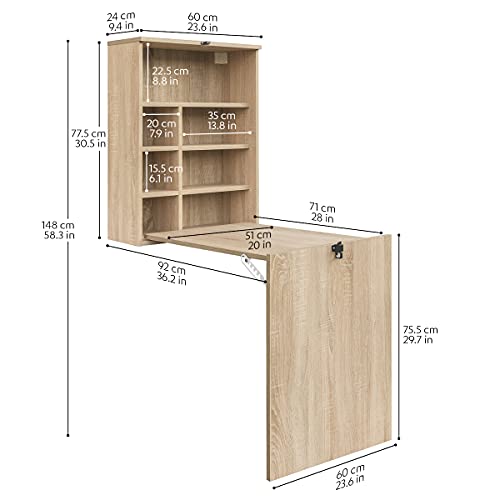 COMIFORT TC82S – Escritorio de Pared Plegable, Mesa Abatible Colgante de Pie Convertidor, Color Blanco o Roble (Roble)
