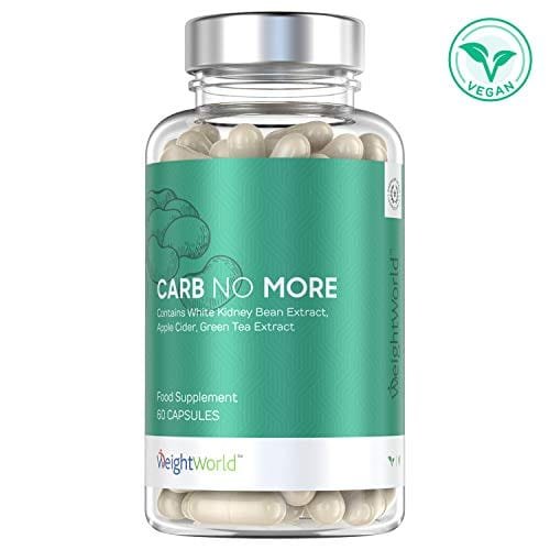Bloqueador de Carbohidratos Carb No More | Suplemento Natural Bloqueador de Carbohidratos y Grasa | Apoyo a Bajar de Peso y Adelgazar | Con Vitaminas Minerales y Proteínas | 60 Cápsulas | WeightWorld