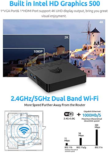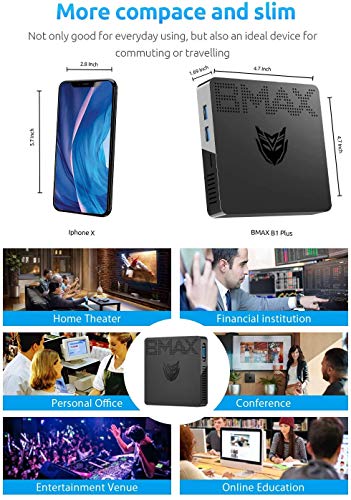 BMAX Mini PC Computer Desktop Intel Celeron N3350(hasta 2,4GHz) 6GB RAM 64GB ROM Actualizable SSD Procesador Windows10 +Dual WiFi/HDMI/