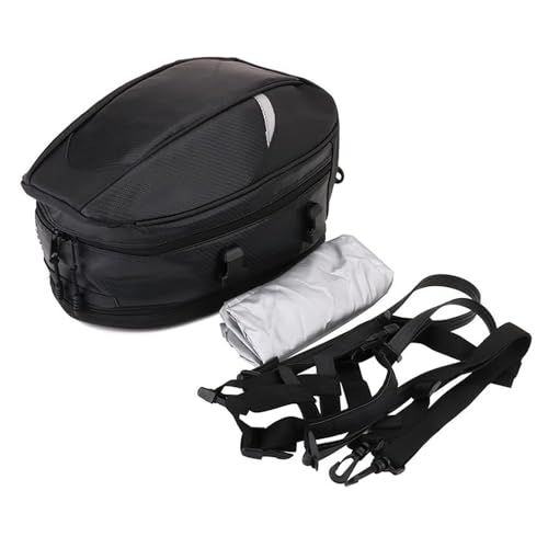 • Fácil instalación: ata la bolsa a la parte trasera del asiento de la moto con las 2 correas, aprieta y cierra con las 4 hebillas que tiene. Contenido del paquete: 1 bolsa para la parte trasera del asiento, 1 funda para la lluvia, 2 correas con hebilla y 1 correa para el hombro.