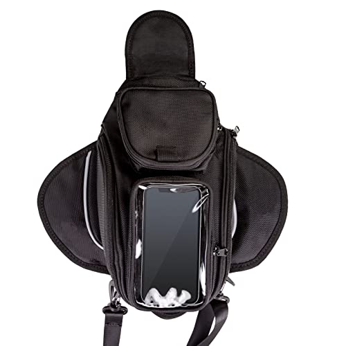 - 【Fácil de instalar】 Hay un potente imán mejorado para fijar la bolsa en el tanque de la motocicleta. Si todavía te preocupa que esta bolsa de tanque se caiga, también tenemos un cinturón de cierre adicional con hebilla para mantenerla firmemente.