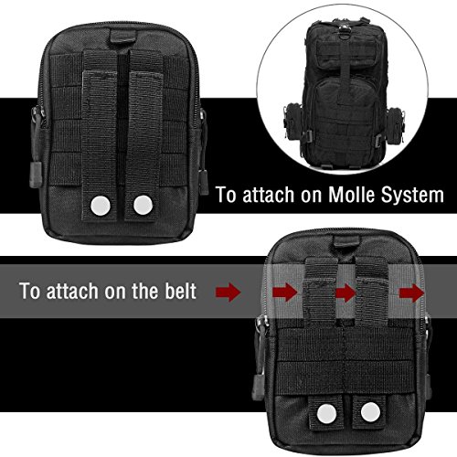 - Múltiples métodos de uso: 1.Se puede usar en una correa: la cinta de nylon modular en la parte posterior puede ajustarse para una anchura diferente de la correa. 2. Como correas de fijación del sistema MOLLE, es adecuado para cinturones tácticos, chalecos tácticos molle o mochilas molle. 3. Se puede unir a un mosquetón para colgar en cualquier objeto