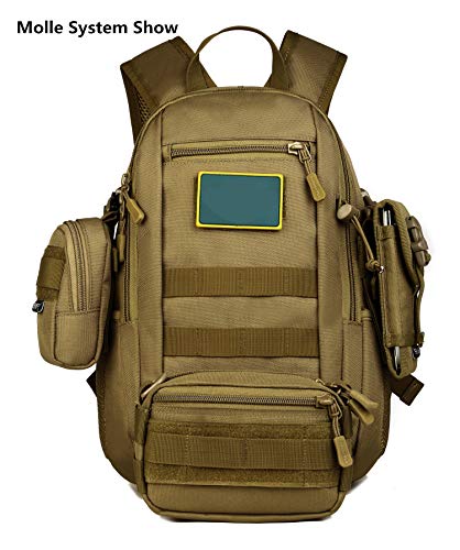 Yakmoo Mochila de Asalto Estilo Militar Táctico Molle Sistema Bolsa de Estudiante Mini Mochila Impermeable 12L al Aire Libre Marrón