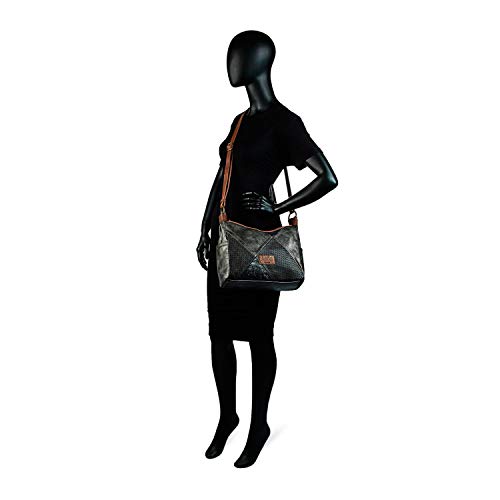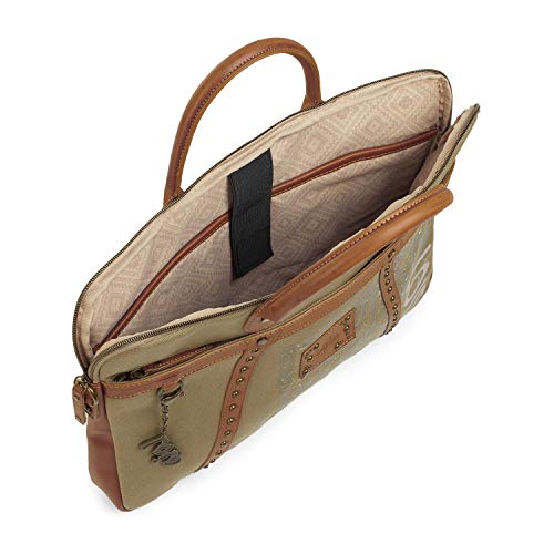 Lois - Cartera Portadocumentos de Mujer. Bolso Mensajero 15". Maletín Ordenador Portátil. Bandolera y Doble Asa. Lona Estampada. Práctica y Cómoda. Calidad Marca y Diseño. 91737, Color Kaki