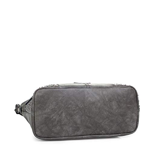 Lois - Bolso de Mujer Grande al Hombro Hobo. Asa Grande y Bandolera. Cuero PU y Remaches. para Diario Paseo Compras Viaje. Diseño Elegante. Moda Marca y Calidad. 94670, Color Gris