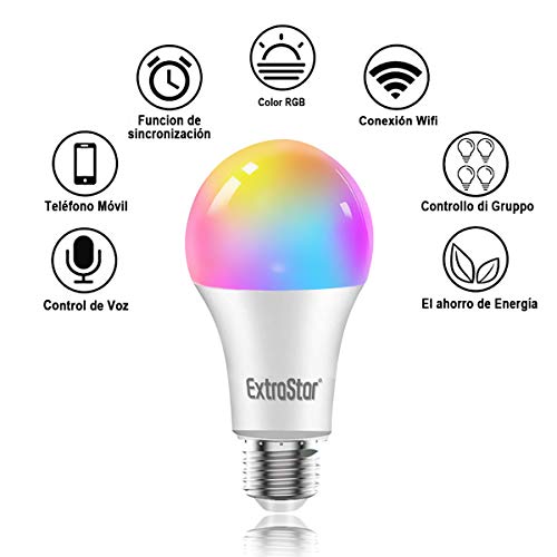 Bombilla LED Inteligente WiFi,Extrastar 2 Pack 10W E27 Bombilla LED Luces Cálidas/Frías & RGB, Lámpara WiFi Funciona con Alexa (Echo, Echo Dot) Google Home, 1000 Lm[Clase de eficiencia energética A]