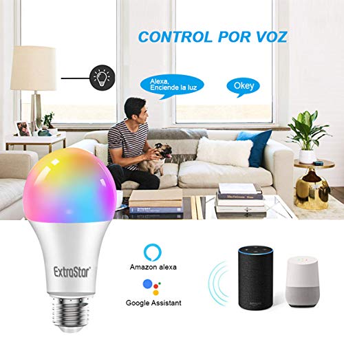 Bombilla LED Inteligente WiFi,Extrastar 2 Pack 10W E27 Bombilla LED Luces Cálidas/Frías...