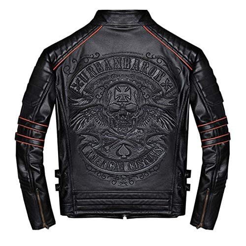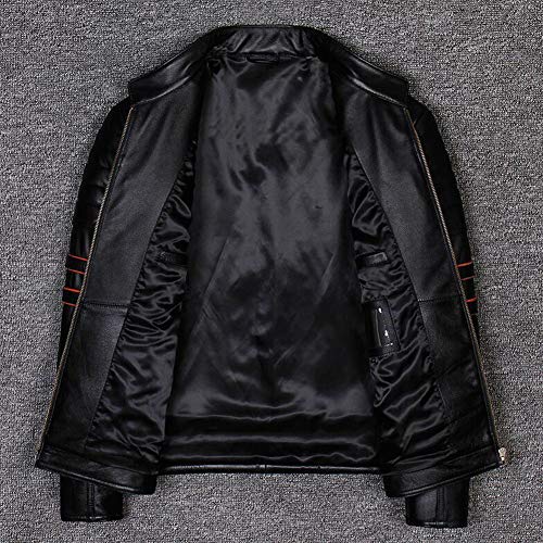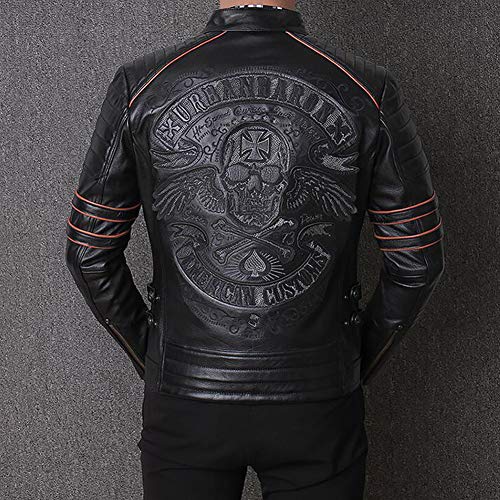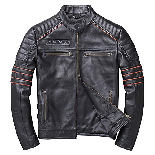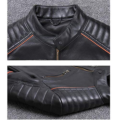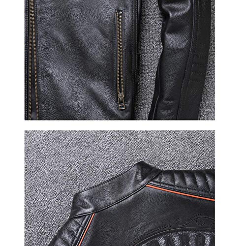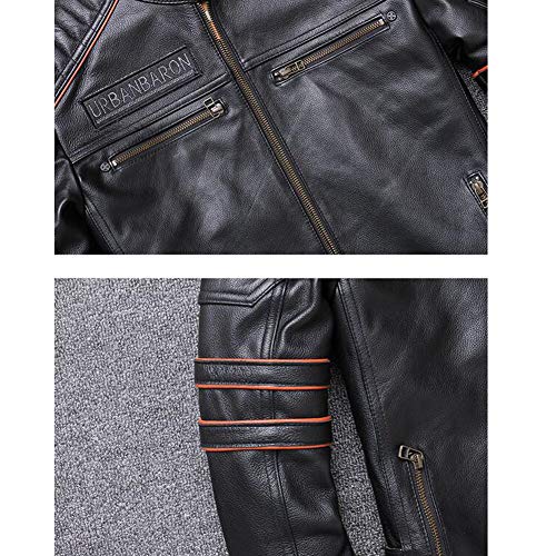 QOCE Chaqueta De Cuero Retro Piel de Vaca Avanzada Bordado a Mano Cómodo y Suave Slim Fit para Hombres, Ciclismo, Moto, Cross Country,XXL