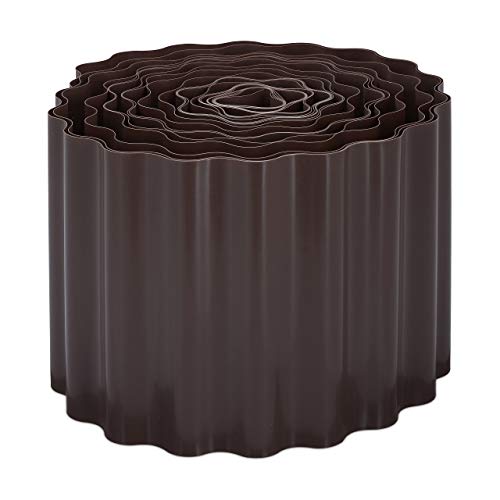 Relaxdays, Marrón, Delimitador de jardín, Borde Flexible para césped, Plástico, 10 x...
