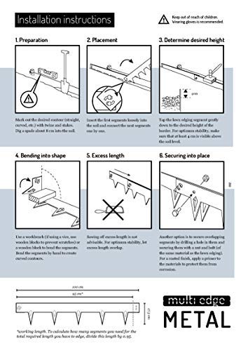 - FÁCIL INSTALACIÓN - El encintado se instala rápidamente presionando ligeramente en el suelo. La instalación del encintado de alta calidad es fácil. Espesor: 4,0 mm y altura: 125 mm.