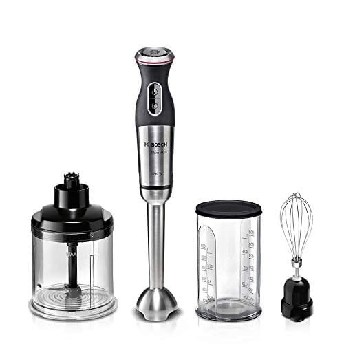 Bosch MaxoMixx MSM89160, Batidora de Mano, 1000 W (Regulador Electrónico de velocidad, Cúpula con Cuatro Cuchillas, con Picador y Varilla Batidora), Negro y Gris