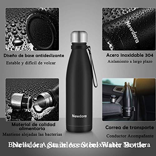 Newdora Botella de Agua Acero Inoxidable 500ml, Aislamiento de Vacío de Doble...