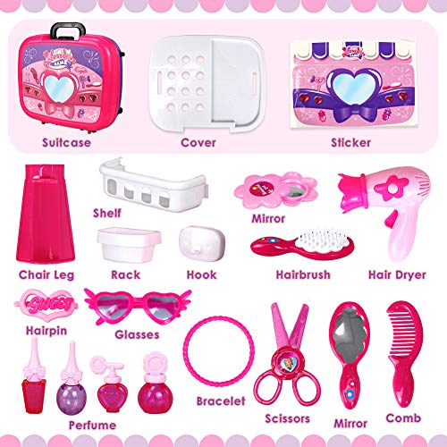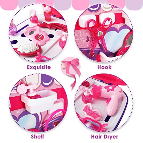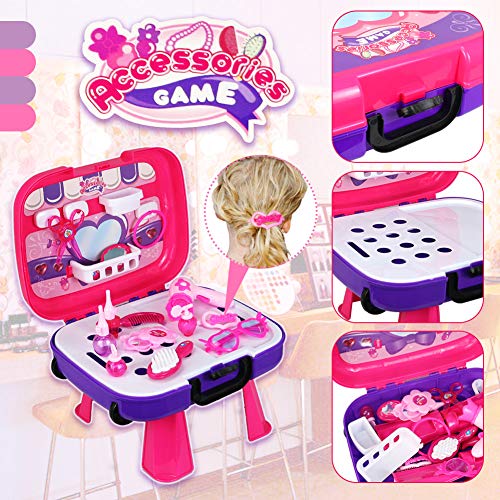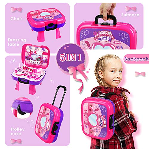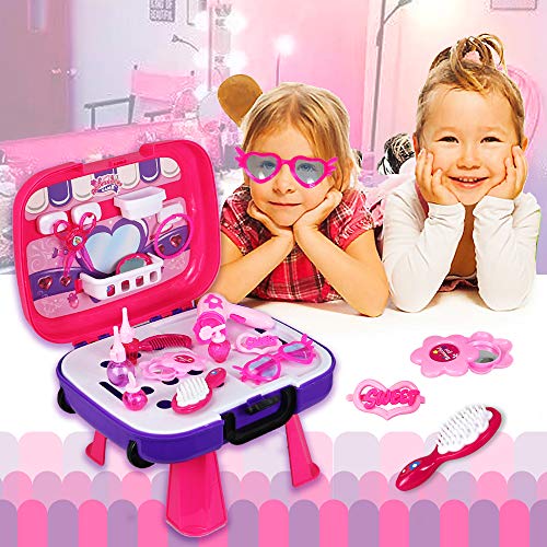 Buyger 5 in 1 Maletin de Maquillaje para niñas Juguete peluqueria 3...