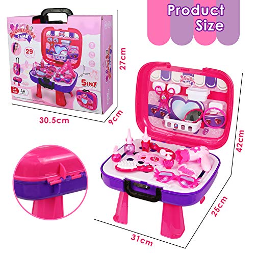 Buyger 5 in 1 Maletin de Maquillaje para niñas Juguete peluqueria 3 años (29pcs)
