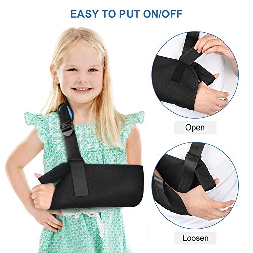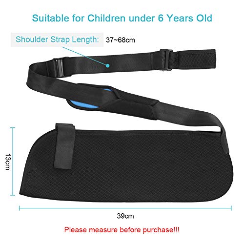 - ✔️CORREA AJUSTABLE: El cabestrillo pediátrico con correa puede utilizarse en cualquier brazo, ya que es para ambidiestros. Para llevar a cabo su uso, el niño debe colocar el codo en la parte cerrada de la órtesis y la mano en la parte abierta, pasando la banda de suspensión por el hombro contrario e introduciendo la cinta por la hebilla y regular la altura o flexión del cabestrillo que sea necesaria