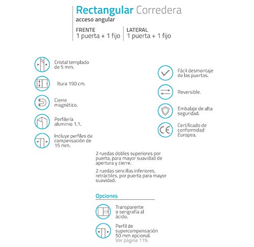 Mampara ducha Rectangular Angular City – Cabina Ducha Cuadrada 2 hojas Fijas...