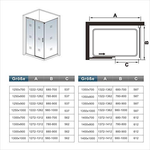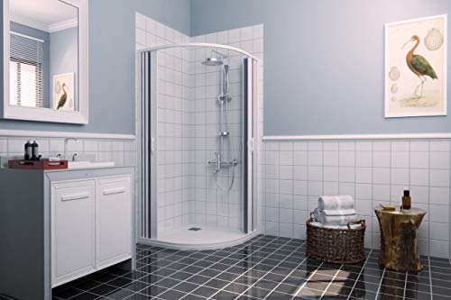 - Cabina de ducha extensible con puertas plegables de PVC, 2 lados, apertura lateral en la esquina. Ahorra espacio: apertura grande para espacios reducidos.