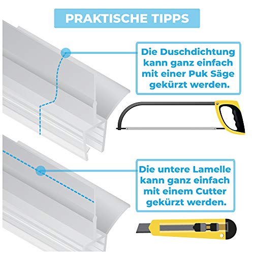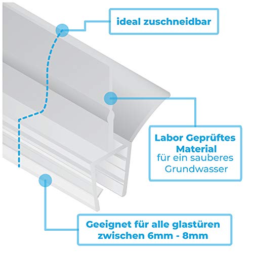 - ️ Ideal como una junta de reemplazo para la tira de sellado existente. Solo corte y acorte el sello de la ducha y el borde de goma en su lugar con el cuchillo de corte GRATIS incluido. La junta de la ducha es adecuada para espesores de vidrio de 6 mm, 7 mm y 8 mm.