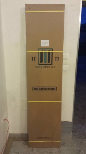 - Cabina de ducha con puerta reversible (consta de tres bultos: techo/suelo, panel trasero y cristales del panel delantero). Instalación de la puerta reversible (plato de ducha no reversible).