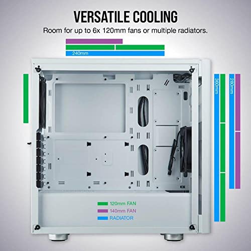 - Opciones de refrigeración versátiles: espacio para un radiador de hasta 360 mm en la parte delantera, un radiador de 240 mm en la parte superior y un radiador de 120 mm en la parte trasera