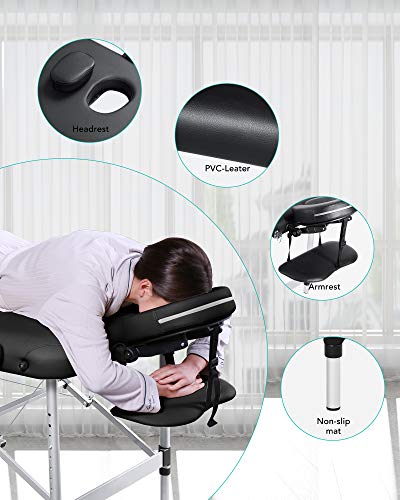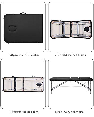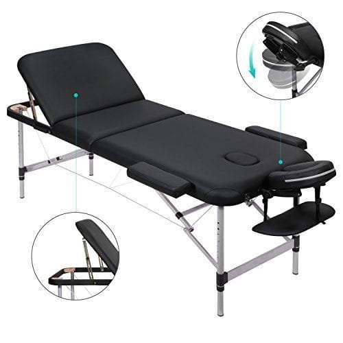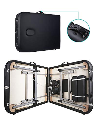 MARNUR Cama de Masaje Plegables 3 Secciones con Marco de Aluminio Altura Ajustable Camilla Masaje Portátil Con Reposacabezas Ergonómico para Masajes Spa Tatuando Cuidado Facial