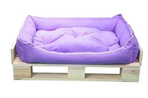 Cama para Perros y Gatos, Sofá para Perros/Gatos, Cesta para Perros/Gatos con Cojín Extraíble de Color Morada + Cama Palet Europeo NUEVOS A ESTRENAR (M, Colchoneta + Palet)