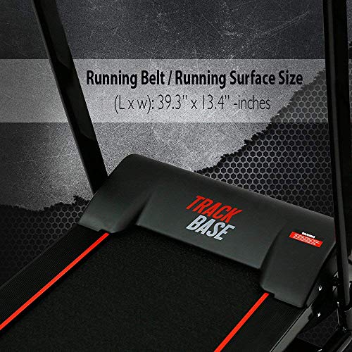 - DETALLES QUE MARCAN LA DIFERENCIA. Controles adicionales de arranque/parada y control de velocidad en el manillar (mayor seguridad) - Cubierta del manillar de espuma suave de primera calidad - SUPERFICIE DE CARRERA 103 x 36 cm - Optimizada para un volumen mínimo y un rendimiento máximo - Marco de satén negro - Se recomienda que cualquier cinta de correr se coloque sobre una alfombra de goma para una mayor comodidad acústica y una experiencia de carrera más gratificante.