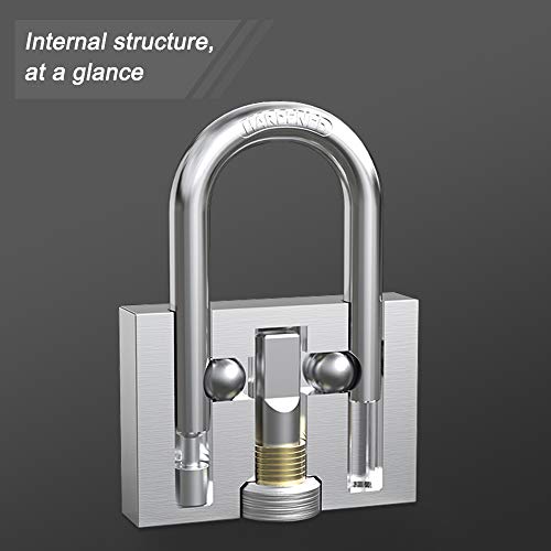 - El diseño de candado duradero cuenta con un cuerpo de acero inoxidable y un chavetero cubierto para una máxima resistencia a la intemperie, y un parachoques reforzado para resistencia a los arañazos