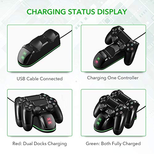PICTEK Cargador Mando PS4, Soporte Mando ps4 USB con LED Indicador, Estación...