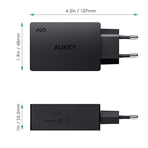- Tecnología de carga adaptable aipower - ajustada para proporcionar la tasa de recarga máxima más segura para todos los dispositivos con alimentación usb con una salida dedicada de hasta 2,4 a por puerto usb ai adaptativamente carga todos los dispositivos alimentados por usb de 5v, incluyendo dispositivos android y apple hasta 2,4 a enchufe todos sus dispositivos para cargar inmediatamente con un potente cargador de pared de 3 puertos protecciones integradas protegen sus dispositivos contra corrientes excesivas, sobrecalentamiento y sobrecarga contenido del paquete: aukey pa-u35 cargador de pared 30w, manual usuario, garantía de 24 meses
