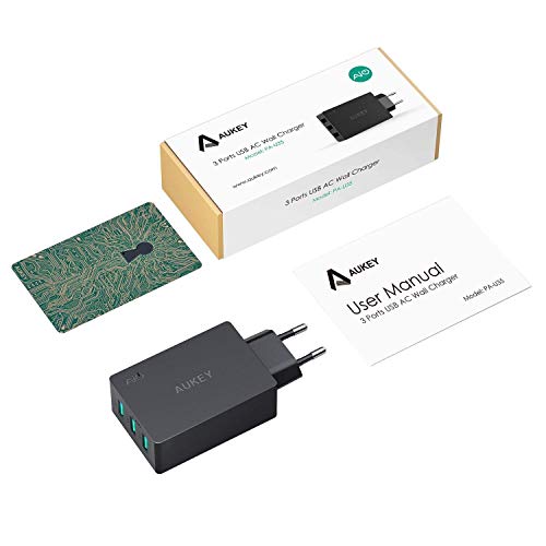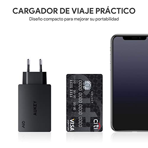AUKEY Cargador iPhone, Cargador USB de Pared con 3 Puertos USB 30W...