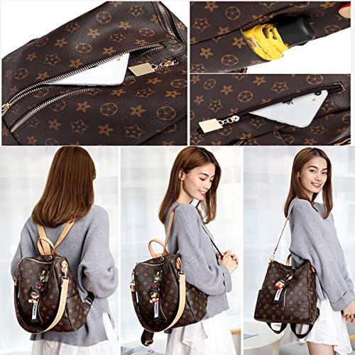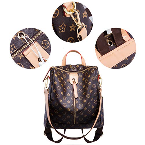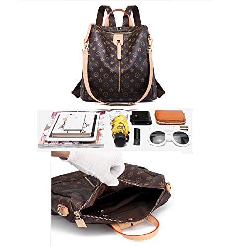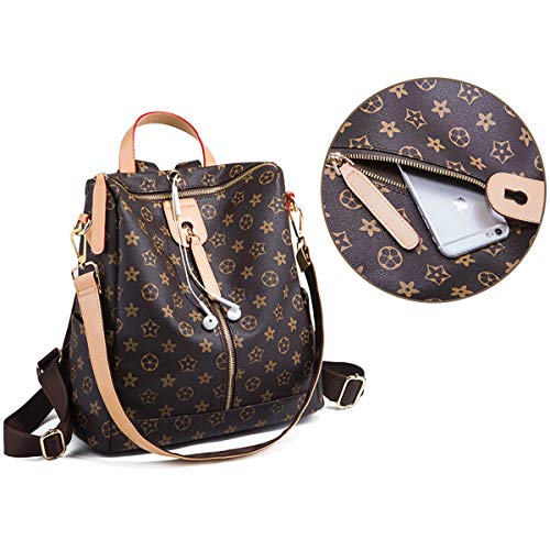 Mochila antirrobo, bolso cambiador con impresión, bolso multifunción, bolso para mujer marrón...