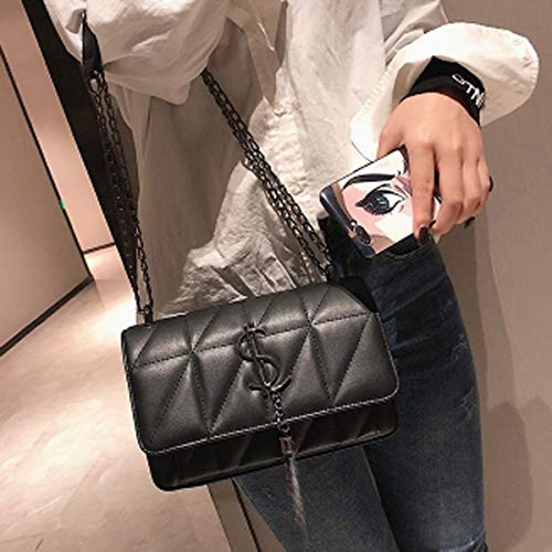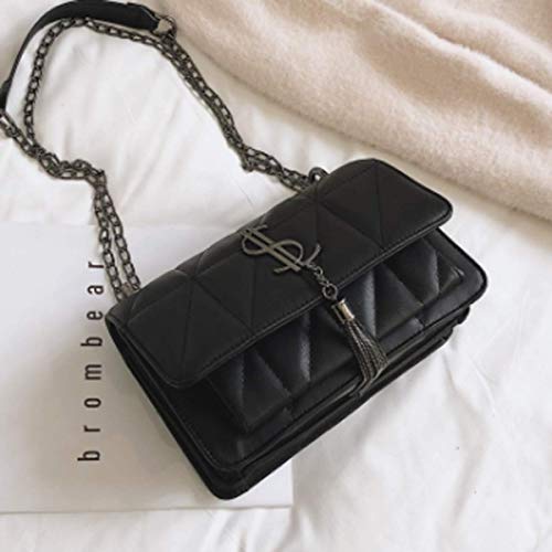 Womens Shoulder Pocket Necklace Quilted Purse PU Leather Women Care negro Negro...