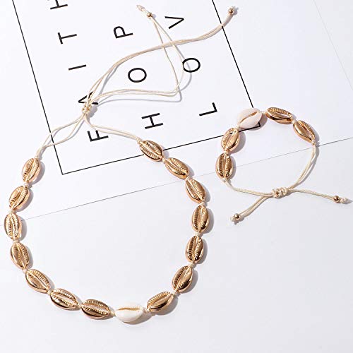 Collar y Pulsera de Conchas, Exquisito Estilo Bohemio Ajustable Retro Pulsera Collar de Conchas Naturales 2 Piezas