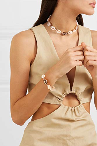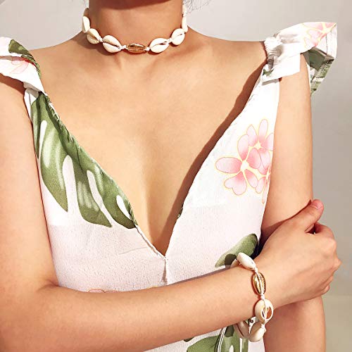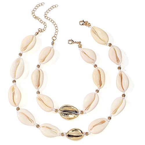 Bascolor Collar Conchas y Pulsera Conchas 2 Piezas Joyas para Mujer Niña Ajustable Cadena Choker Pulsera Vintage Collar Gargantilla Conchas Verano Playa...