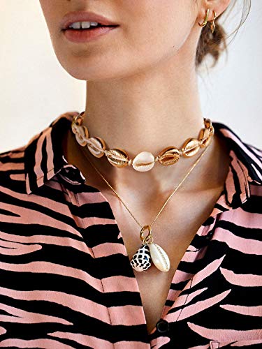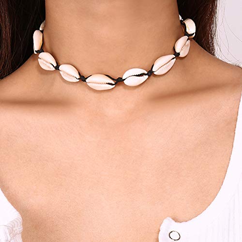 Gleamart Conchas Collar Blanco Natural de la Playa de Shell Gargantilla Ajustables para Las Mujeres Blancas