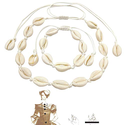 Collar y Pulsera de Conchas, Exquisito Estilo Bohemio Ajustable Retro Pulsera Collar de Conchas Naturales 2 Piezas