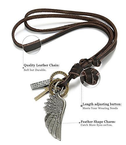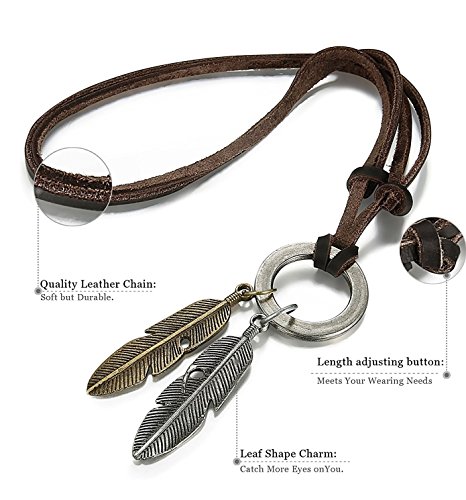Sailimue Cuero Collare Hombre Mujer Largos Collares y Pendientes Ajustable Unisex