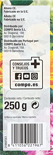 1 Compo 250 g Quelato, Reverdeciente anticlorosis, EDDHA 13% Hierro Soluble en Agua, Incluida Cuchara dosificadora, Negro