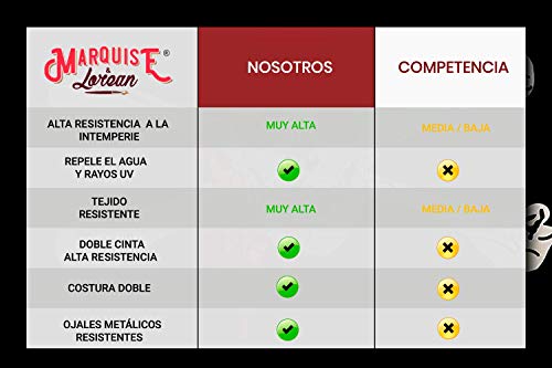 - MATERIALES: Fabricada con poliéster duradero. Doble costura en todos los bordes y reforzados con lona y dos ojales de latón.